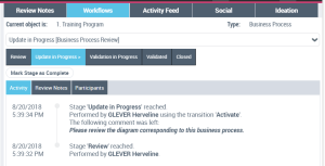 After triggering the first workflow transition, you may view the activity of the on-going workflow: