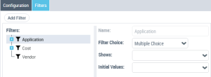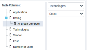 Example 3: from a Report DataSet with the "Application Technologies" definition, select "Vendor" and repeat the operation for "Cost" and "Application".