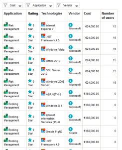 Example 2: from a Report DataSet with the "Application Technologies" definition, for the "Vendor” column, in the Group field, select “yes” to group the applications according to their vendor.