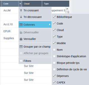 2. Roll the mouse over the header of the column that corresponds to the attribute concerned.