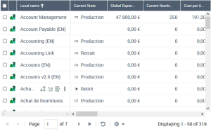 In the lists, you can configure the columns and define filters on the columns.