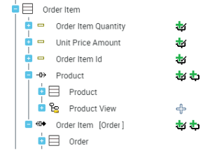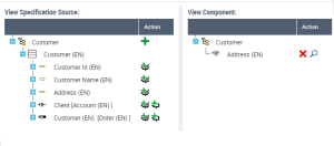 Below, only the attributes defined in the "Customer" view (Account Id and Address) are added to the "Order" view.