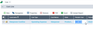 You can create cost lines singly, or automatically create three cost lines corresponding to the three cost natures possible for an application: license, service, manpower.
