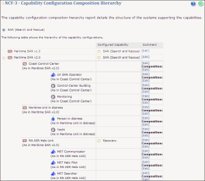 The NCV-3 capability configuration generalization hierarchy shows how the capability configurations of the architecture are generalized.