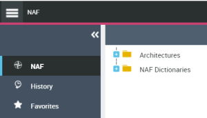 In the NAF navigation window, the NAF architectures are found in the "Architectures" folder.