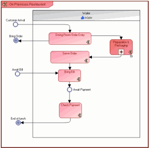 In the above example, the editor asks you to choose between the entry points "Customer Arrival" and "Await Bill".