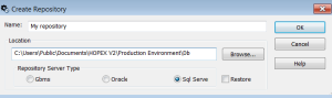 4. (Optional) By default, the repository is created in the Db folder of the selected environment; to modify this, click Browse and define another location.