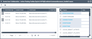 Example: in the above example click the fifth row to get detailed information regarding the macro "Collaboration - Action Floating toolbar".