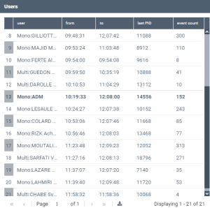 3. Click the user row you are interested in to get detailed information regarding all its events.