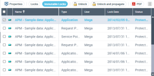 4. (Optional) To sort immutable locks according to column, click the column header.