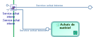 Dans l'exemple présenté ici, le service d'achat interne est lié à deux interactions, basées sur le même contrat d'échange, qui représentent l'activation de l'application d'achat de matériel ou l'application d'achat de fournitures.
