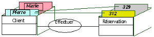Le dessin suivant permet de visualiser "en trois dimensions" les situations qu'un diagramme de classes permet de mémoriser.
