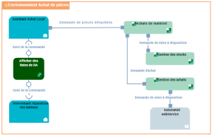 Le diagramme suivant décrit l'environnement d'application correspondant au traitement des achats de pièces détachées.