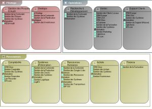 Le diagramme positionne les applications du portefeuille dans les zones qui représentent les capacités métier. Il reflète ainsi la couverture fonctionnelle des applications du portefeuille.