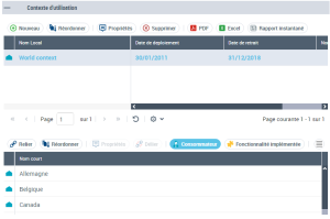 Le contexte d'utilisation de l'installation d'une application ou d'un système applicatif permet de spécifier la liste des fonctionnalités offertes à chaque population d'utilisateurs pour une installation donnée pendant une période de temps. Plusieurs contextes peuvent être créés pour une installation donnée.