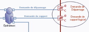 Dans l'exemple, les points de requête représentent les demandes de service effectuées entre les opérateurs du centre d'appels et les autres organisations.