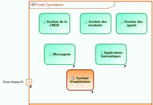 Un poste opérateur est basé sur cette architecture et héberge en plus des applications spécifiques pour la gestion de la CMDB, des appels et des incidents.