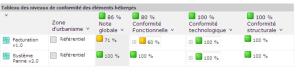 Le dernier tableau affiche les niveaux de conformité par zone d'urbanisme. Dans l'exemple ci-dessous, la zone "Référentiel" affiche une complétude fonctionnelle de 71%, qui s'explique par le fait que deux des fonctionnalités requises pour la zone ne sont pas implémentées par les applications de la zone.