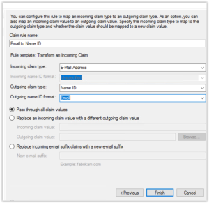 10. In the Incoming claim type field, select “E-Mail Address”.
