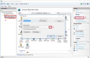Remark: if you plan to install the web components in a different location than “C:\inetpub\wwwroot”, you need to first configure the root directory of the website where you will install it. Here, an example for the “Default Web Site”: