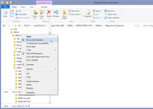 2. Right-click « MEGA Server Supervisor.exe » tool and select Run as administrator.