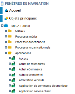 1. A partir du volet Référentiel, sélectionnez Objets principaux.