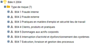 3. Si vous sélectionnez Types de risque, par exemple, la liste des types de risques associés au cadre réglementaire s'affichent.