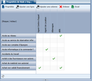 6. Si vous cliquez sur la case vide au croisement entre un risque et une entité, vous reliez le risque à l'entité.
