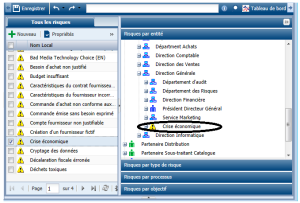 2. Dans l'arbre de contextualisation de droite, sélectionnez par exemple Risques par processus et dépliez l'arbre jusqu'à afficher les risques reliés au processus qui vous intéresse.