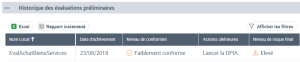 Lorsque vous enregistrez l'évaluation préliminaire, celle-ci est stockée dans la section Historique avec les valeurs que vous avez saisies.