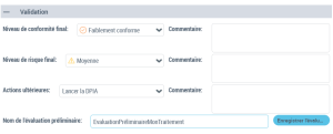 2. Sélectionnez une valeur pour le Niveau de conformité final et pour le Niveau de risque final.