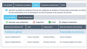 Il peut être nécessaire de créer des sous-traitements lorsque vous faites appel à une application ou à un sous-traitant pour l'exécution d'un traitement.