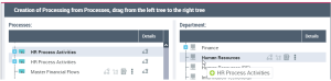 2. Sélectionnez un processus dans l'arbre de gauche et glissez-le dans l'arbre de droite sous un département spécifique.