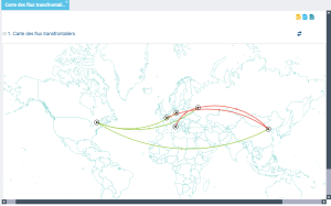 Vous pouvez générer une carte des flux transfrontaliers qui affiche dans une carte mondiale les transferts de données sélectionnés.