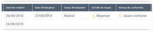 • la date d'évaluation : dernière évaluation réalisée