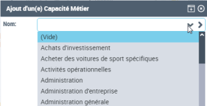 3. Cliquez sur la flèche associée au champ Nom et sélectionnez la capacité métier qui vous intéresse.