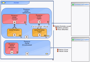Dans l'exemple ci-dessus, les processus des achats de l'entreprise se répartissent entre les processus d'achats opérationnels et les processus d'achat d'investissement.