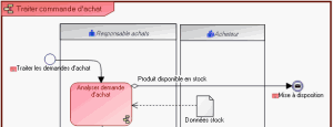 Dans l'exemple suivant, le processus organisationnel "Traiter la commande d'achat" est activé après le traitement de la demande d'achat et active lui-même le processus de "Mise à disposition". Pour plus de détails, voir .