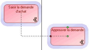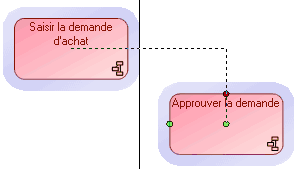 Les deux opérations apparaissent en surbrillance et un lien pointillé indique la trajectoire qui sera prise par le lien graphique.