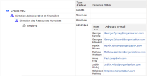 • La première partie détaille de la structure organisationnelle de chaque acteur passé en paramètre. Dans cette partie, tous les acteurs analysés sont listés avec leur type, leur parent, les sous-acteurs, les personnes impliquées dans la réalisation des tâches associées à l'acteur et d'autres informations relative à ces personnes. Cette partie affiche aussi des données statistiques: le nombre d'acteurs, le nombre de personnes.