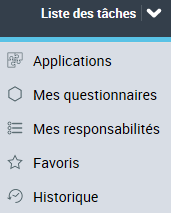 Ex. : L'onglet Liste des tâches affiche la page Mes responsabilités.