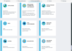 Ex. : Le volet de navigation Liste des tâches affiche l'onglet Mes responsabilités et présente ses tuiles associées.
