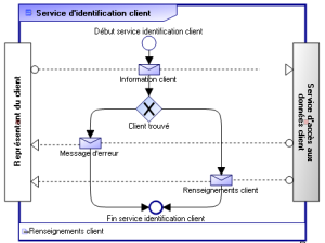 Le déroulement du service d'identification de client commence par l'envoi d'information permettant d'identifier le client. Un message d'erreur est émis si le client n'a pas été trouvé, sinon les renseignements client sont envoyés (identification client, état des commandes, etc.).