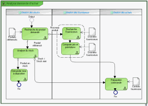 • Si le produit est nouveau, une recherche de fournisseur et une étude comparative des prix est menée. Puis une commande est émise et le processus prend fin.