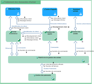 Par exemple, le système de traitement des demandes d'achat utilise les services des systèmes applicatifs de la “Plateforme de gestion des achats” et de “Gestion des paiements”.