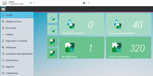 Le volet Architecture des applications donne accès au menu Architecture fonctionnelle, pour décrire les systèmes applicatifs du système d'information.