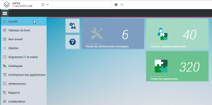 Les tuiles de l'espace Accueil de HOPEX IT Architecture sont :