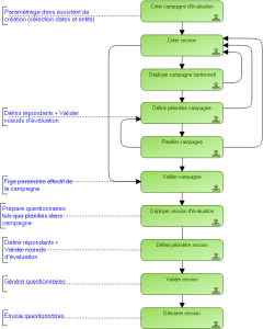 Ci-dessous un exemple de déroulement du workflow d'évaluation dans le cadre du lancement des sessions via une campagne.