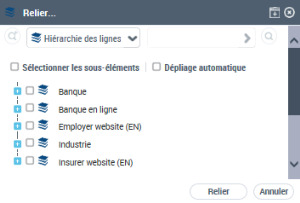 • de la page de propriétés d'un objet, dans le but de relier des objets.