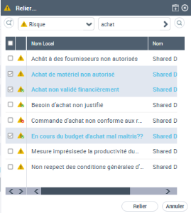 Lorsque vous voulez relier un objet, HOPEX vous propose un assistant de recherche.